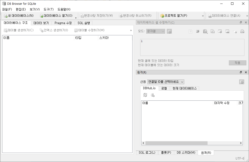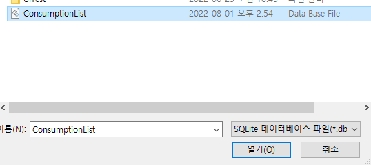그리고 다시 DB Browser for SQLite로 돌아와 [데이터베이스 열기]를 눌러 데이터베이스를 열어준다.