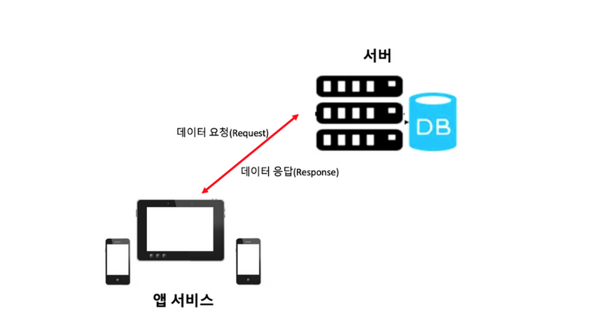 서버는 원하는 데이터를 요청하면 이에 응답해주는 역할을 합니다. 앱, 즉 클라이언트에서 원하는 데이터가 있을 때마다 서버에 요청하고 응답 데이터를 받아 사용자에게 보여줍니다.