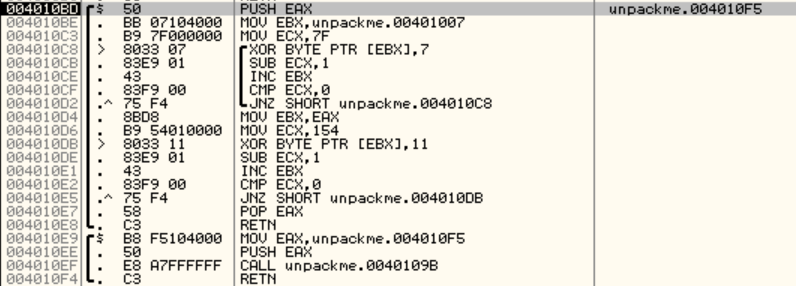 (4010C8~4010D2) 주소가 복호화2 루프이고, (4010DB~4010E5) 주소가 복호화3 루프이다.