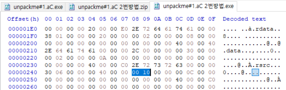 그럼 PEView에서 중요한 내용을 모두 찾았으니 HxD를 열어 마지막 섹션을 확장한다.