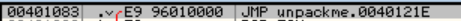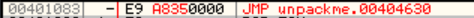 인라인 패치의 마지막 작업으로 앞에서 만든 패치 코드가 실행되도록 파일을 직접 수정해야 한다. 인라인 패치의 작업 순서를 소개하면서 말했듯이, JMP OEP를 JMP Patch Code로 바꿔준다. JMP OEP 코드는 401083 주소에 있다.