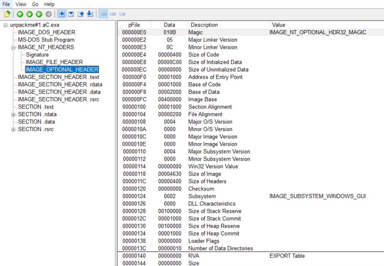 다음은 NT 헤더에 있는 OPTIONAL 헤더를 살펴본다.