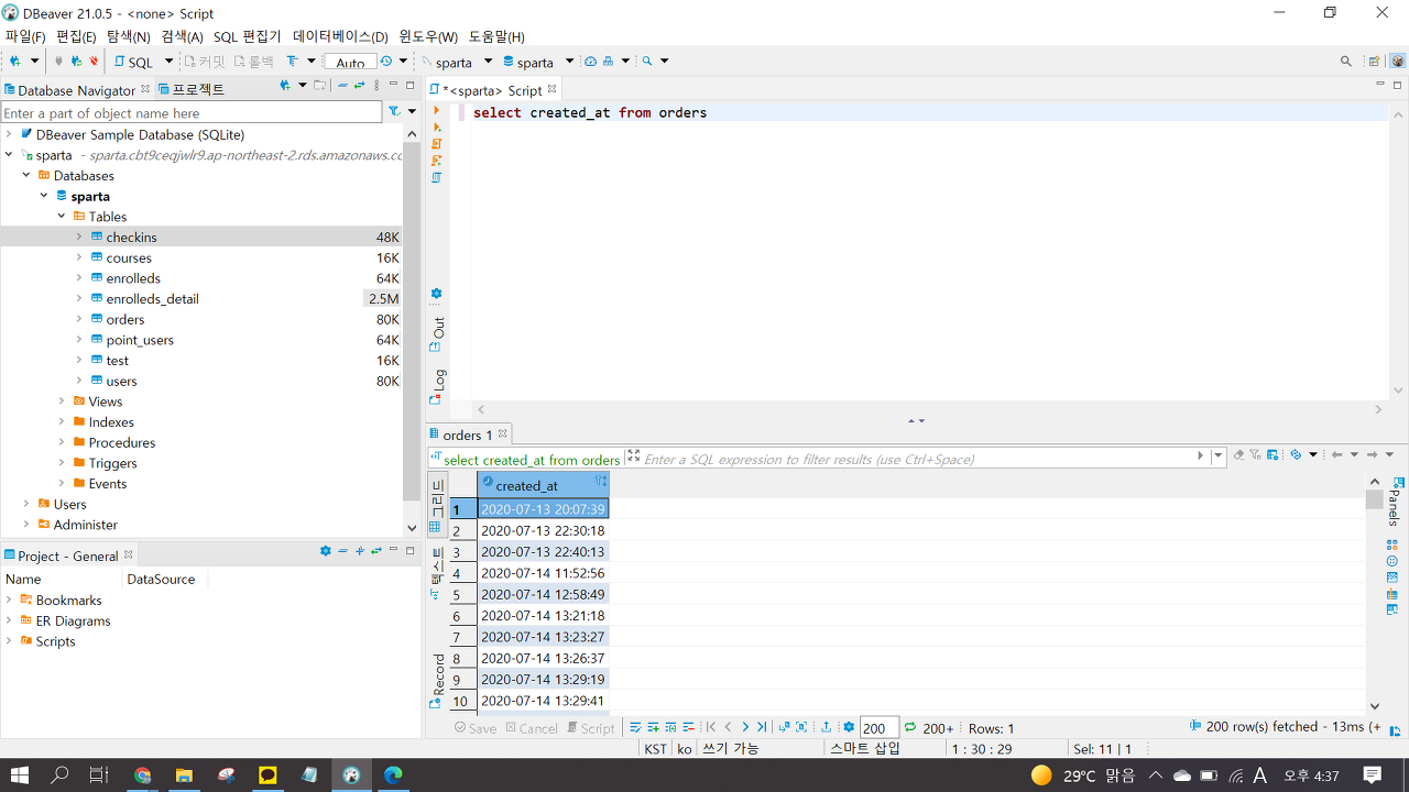 ex) select created_at from orders