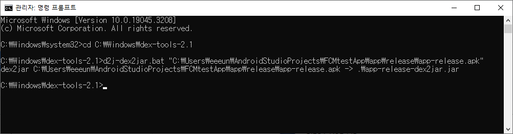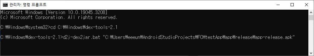 dex2jar 파일은 apktool처럼 C:\Windows 경로에 배치시켜 cmd에서 바로 사용할 수 있게 한다. (다른 경로에 위치해도 무관)