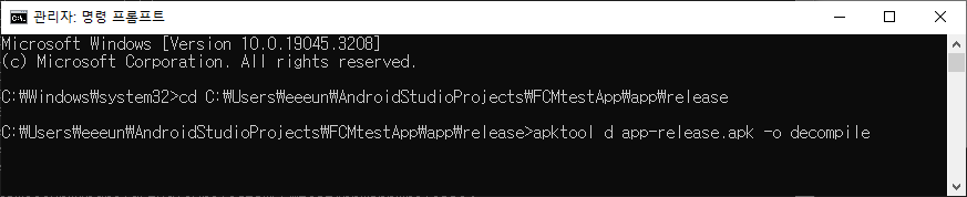 | > apktool d {apk 파일} -o {디컴파일한 파일의 폴더} |